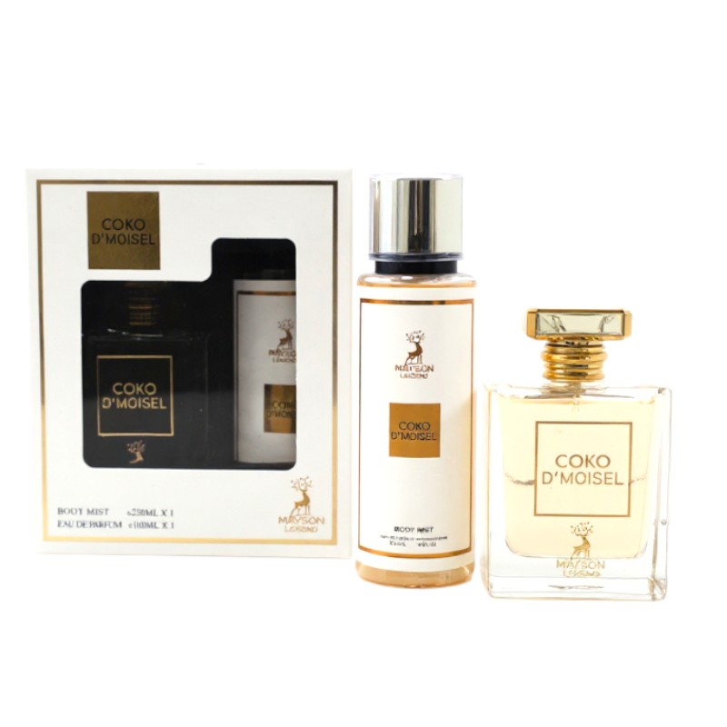 מיסון לגנד מארז קווקו דה מוסיל 100 מ”ל א.ד.פ +250 מ”ל בודי מיסט – MAYSON LEGGND SET COKO D’MOISEL 100ML EDP+250BODY MIST